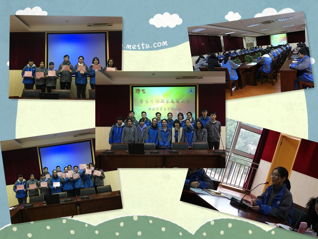 会议首先盘点了本学期70余项团学活动。从“我与国旗合个影”到“十九大精神进校园”,从“入团检查”到“团校开班”,从“青声说”辩论赛到“纪念一二九运动”红歌会,从“社区平安志愿者”到“区中学生民防运动会志愿者”,从第九届“我爱你·中国”诗歌朗诵会到微电影《蜕变》,从“最美校园”巡礼到“学子诗话·醉美校园”……大大小小的实践活动记录了同学们青春的足迹。