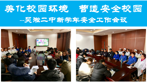 今天,吴淞二中安全工作领导小组全体成员、学校安保、食堂工作人员和卫生保洁人员召开了新学期第一次安全工作会议。