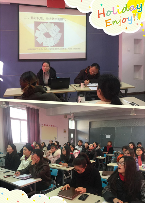 总结会上,师训专管员老师从“读书练字,增加教学的底气”、“修订反思,壮大教学的胆气”、“课堂实践,积攒教学的才气”和“讲座培训,提升教学的灵气”四方面回顾总结了青年教师在这一学期中在自己的岗位上的成长与收获。在付出中累积经验,在磨练中逐步完善自我。支校长针对青年教师上学期的工作进行了鞭辟入里的总结,提出了中肯的改进意见,希望青年教师有一颗责任心,有一股钻研劲,有一张爱问的嘴。