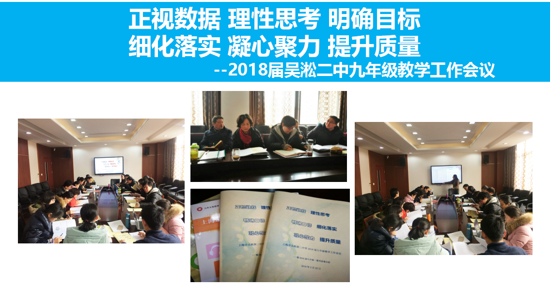 吴淞二中2018届九年级教学工作会议新学期前如期举行。本次会议主要包括教导处质量分析、备课组长交流、任课老师交流发言、年级组后期工作安排、专家指导和本学期学校工作要求等六个流程。