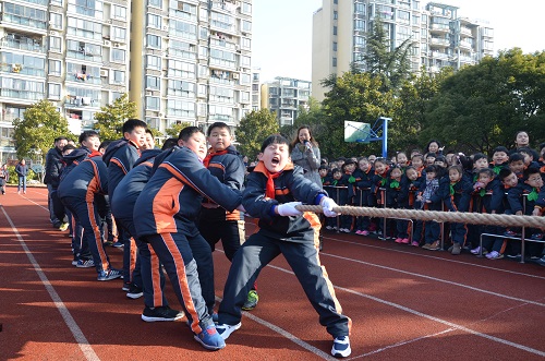 姜校长也带来了新学期寄语。她引用央视《经典咏流传》节目中的一首小诗《苔》“白日不到处,青春恰自来,苔花如米小,也学牡丹开”鼓励孩子们积极努力,呼吁同学们在新学期好好学习和锻炼,像牡丹一样绽放,做一个更好的行知人。同时,姜校长还为各年级抽出了开学第一天的幸运儿。最后,一场师生间的拔河比赛将整个开学典礼带向高潮,由三到五年级的学生代表和男老师们展开角逐。