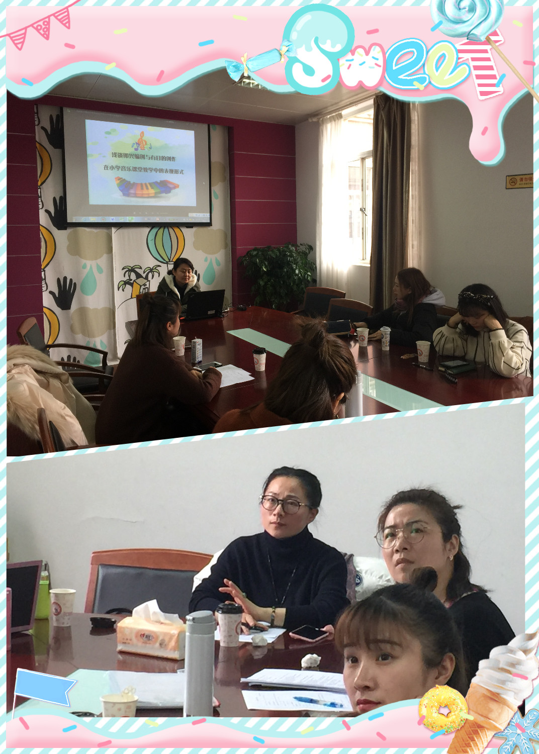 项目组的老师除了精心准备了微课,还积极地互相出谋划策,一起来完善各自的成果。教研员老师指出:“微课的内容要精简,围绕难点展开,为的是最后解决难点。教师的微课设计、语言、采用的方法应符合各年龄段学生的学情,以及学生与老师的服装最好要符合微课主题,干净统一。”同时,教研员还为老师们微课中舞蹈律动修改动作,亲自示范,以及老师们在微课中的一些过渡性语言和评价提出了宝贵建议。