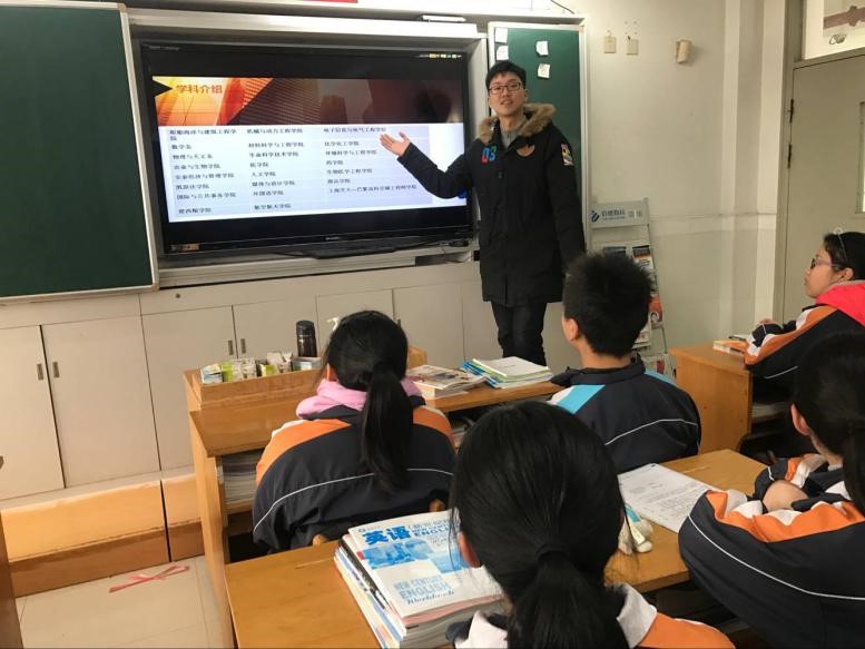首先,刚刚毕业的2017届学长曹旭诚为本次主题教育课作了开端。他简要地介绍了本次课程的流程和意义。之后,来自复旦大学、交通大学、上海财大、上外的八位学长学姐对自己的大学以及所在专业进行了简要介绍。已经接触到大学生活的学长学姐们,介绍的内容远远不止就读学校的笼统描述,更是聚焦在所长专业的学习生活和同学们最有疑惑的问题上。因此,每位学长或学姐的介绍,都恰到好处、入木三分。这样风趣幽默又实用的有效讲解,同学们听了时而开怀,时而频频点头、认真记录。