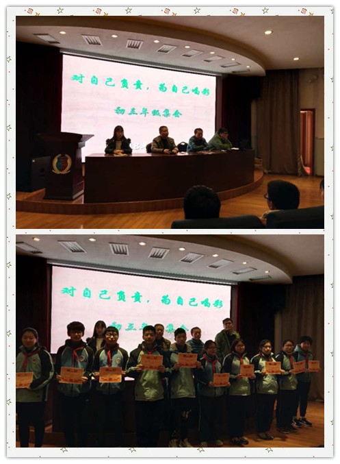 会议上,年级组长也总结了一模考的成绩,进步和不足,校长、副校长表彰了成绩优异和进步的同学,并要求全体初三学生认真分析查找原因,均衡发展、补短板、踏实努力、树立信心,为了考取自己心仪的学校奋发读书,努力拼搏。