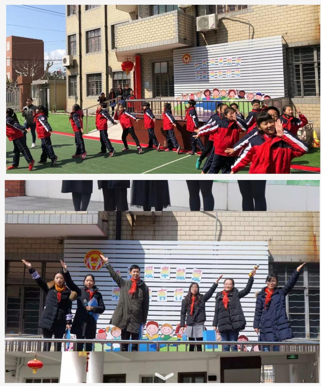 临江新村居委干部向全体师生发出倡议:希望老师与同学们一起行动起来,用真诚的问候、甜美的微笑来温暖人心,从身边的点滴小事做起,把帮助别人当作自己最大的快乐。