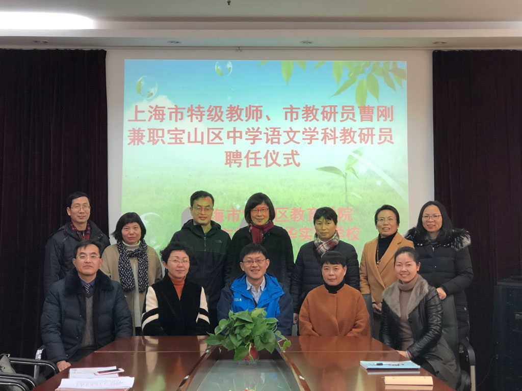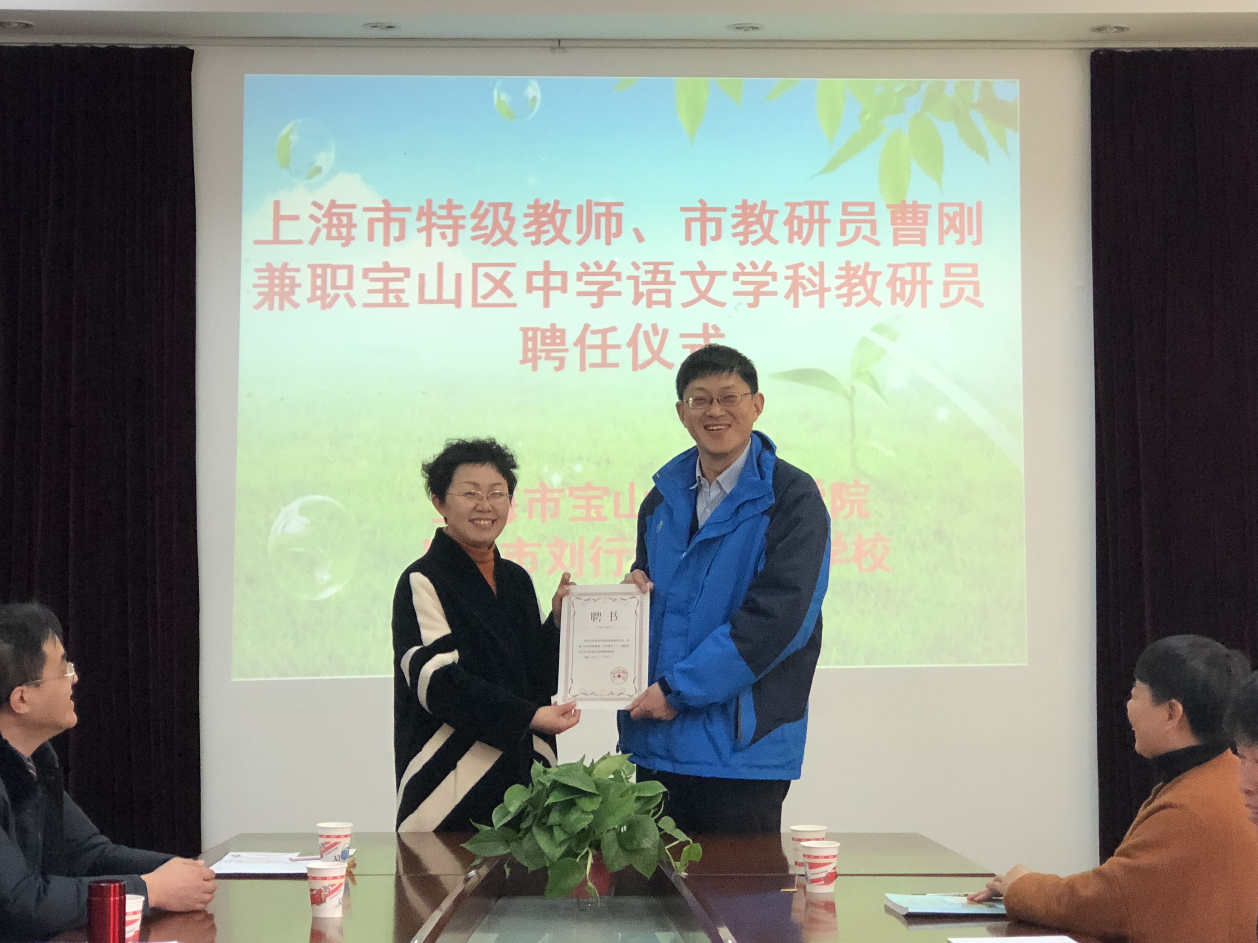 3月8日下午,上海市特级教师曹刚兼职宝山区中学语文学科教研员聘任仪式在刘行新华实验学校举行。