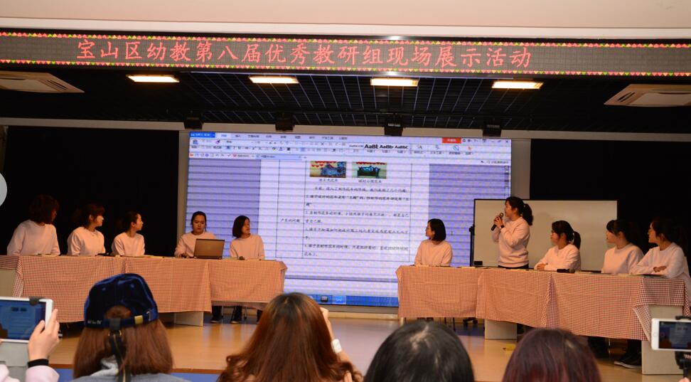 2018年3月19日上午,宝山区第八届优秀教研组现场展示活动专场在宝山区机关幼儿园展开,本次活动由宝山区教育学院主办,邀请了七色花艺术幼儿园大教研组,彩虹幼儿园大教研组以及机关幼儿园阅读项目组三个教研组面向全区业务园长展示优质教研现场。