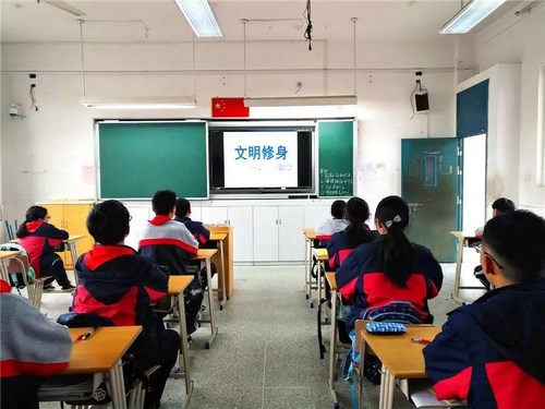 本周班会课上,华东师范大学附属杨行中学各班召开“文明修身,躬亲力行”主题班会,各班用学习、讨论、交流、表演等形式,倡导同学们加强自身思想道德建设、提高文明修养水平、丰富内在人文素养。