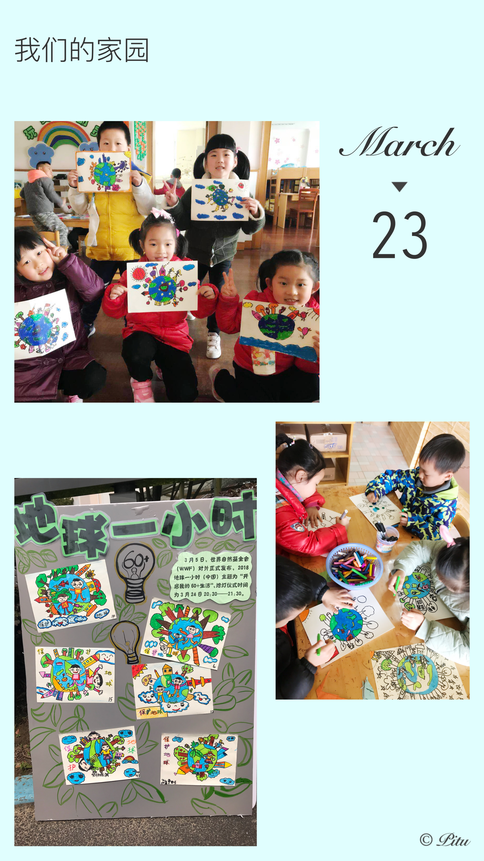 “地球一小时”也称为“关灯一小时”,是世界自然基金会在2007年向全球发出的一项倡议。为了让节约能源的好习惯在孩子的心灵中萌芽,了解气候变化带来的危害,杨行中心幼儿园利用周五在幼儿园的时间展开了以各年级组为单位的“地球一小时”系列活动。