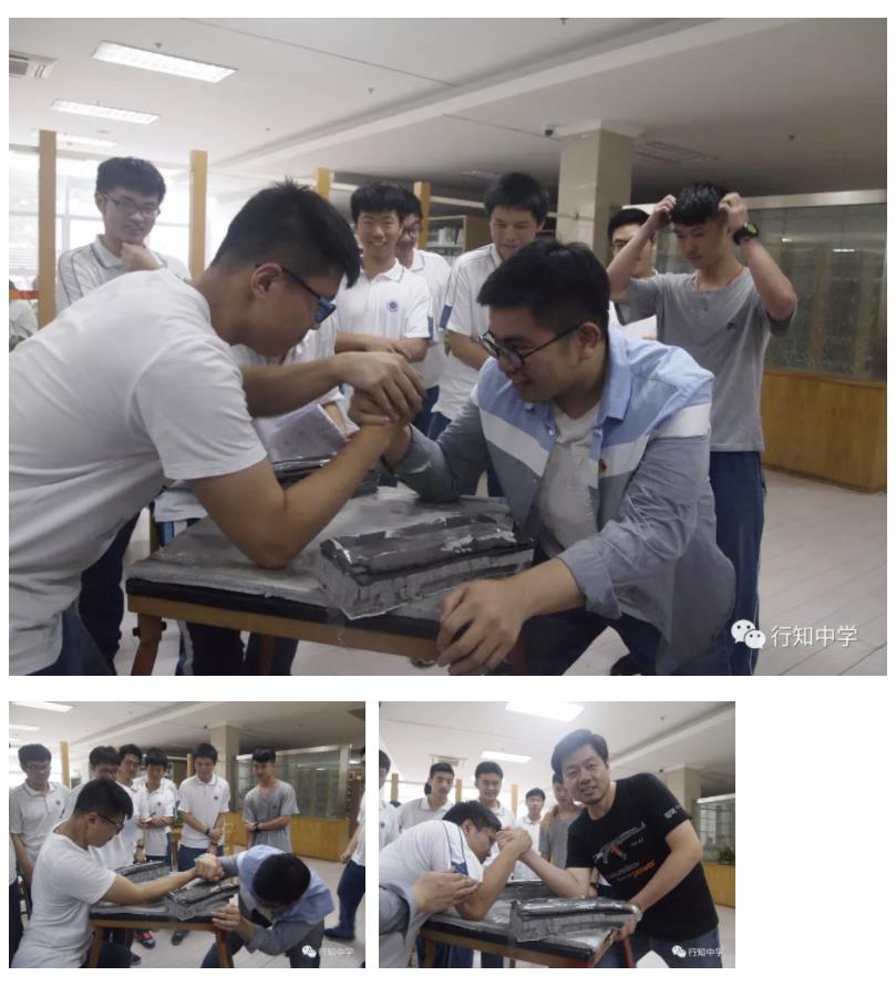 腕力大赛:腕力大赛规则十分简单,就是擂台赛,将所有对手打败者便成为擂主获胜。这不仅是力量的展示,更是技巧的体现,“加油!加油!”同学与老师们都目不转睛地盯着擂台看,选手们卯足了劲,生怕有那么一丝的闪失,最终有大力王之称的陈磊老师赢得了擂主,赢得掌声阵阵……
