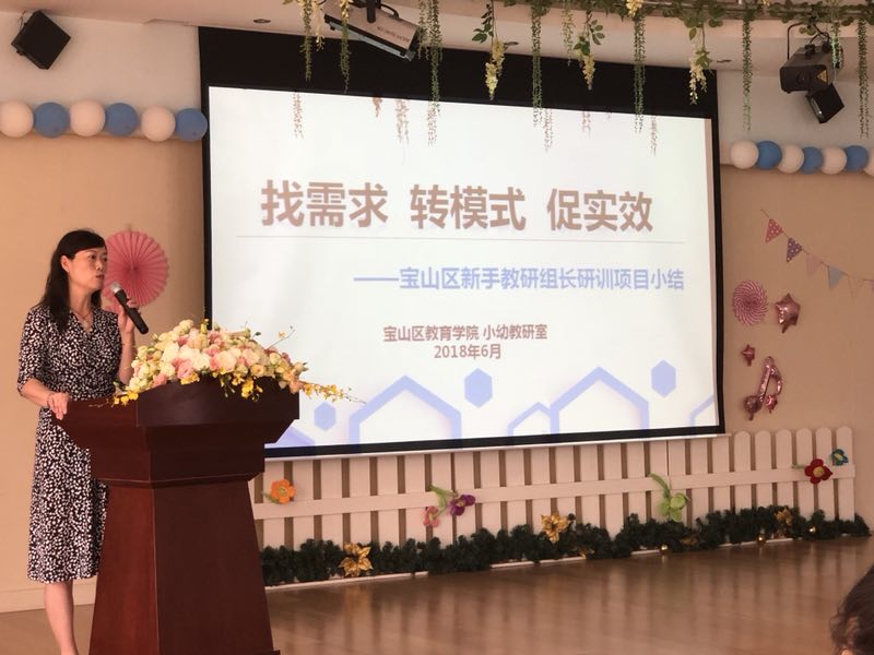 活动现场,数字故事《成长.蜕变》带着大家回顾了研训班一年来的心路历程,开启了主题为《助力成长,放飞梦想》的首期新手教研组长研训班结业仪式。宝山区小幼教研室就本次研训项目的由来,研训项目的发展,研训项目开展后的再思考这三方面对本次培训进行了题为《找需求