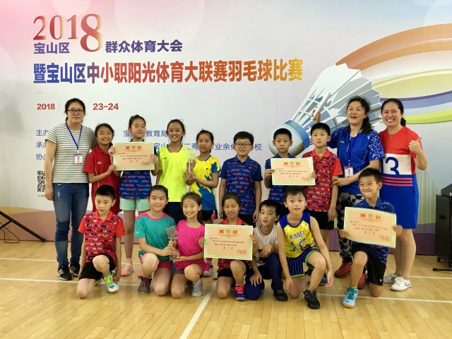 2018年6月24日,宝山区阳光体育大联赛羽毛球比赛开幕了。一中心小学的四支羽毛球队在团体赛场上披荆斩棘最终获得: 由周嘉怡、戴妍雅、项楠、皮好组成的一二年级组荣获宝山区小学女团第一名;由刘南溪、顾慕皓、吴子云、蔡天洋组成的一二年级组荣获宝山区小学男团第三名;由郑子尧、金楚依、凡竞菲、金嘉欣组成的三四五年级组荣获宝山区小学女团第一名;由王睿逸、房梓涵、邹逸宸、武浩正组成的三四五年级组荣获宝山区小学男团第二名。