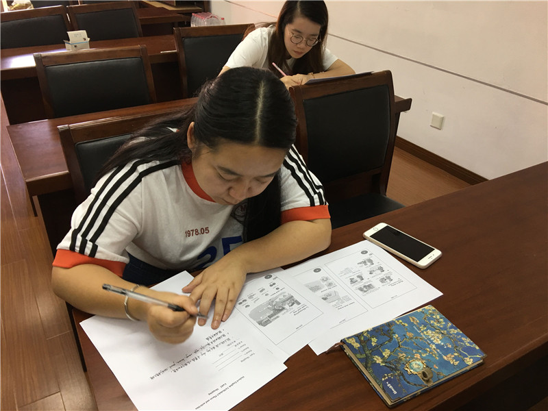 备课比赛现场进行,内容由学校统一选定。现场备课活动要求教师只能携带笔,没有任何的参考,也没有像往日的交流。在两个小时的现场比赛中,参赛教师们专注投入,从容不迫,解读文本,结合自己对新课标理念的理解,递交一份份设计新颖的教学设计。