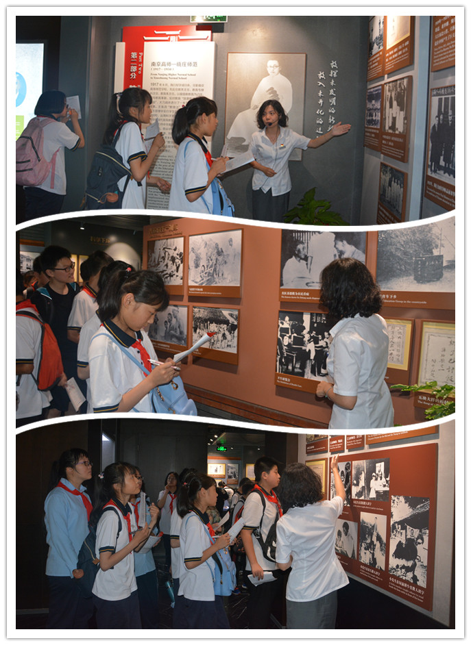 炎炎烈日,纪念馆教师以饱满的热情迎来了孩子们,根据学习单的五站式任务,教师们充分作好准备,以声情并茂的讲解、智慧留有思考空间的启迪、情感交融式的师生互动,带领同学们“穿越”陶行知成长与办学经历,感受陶行知爱国情怀与报效祖国的实际行动,激发学生自主参观学习、积极讨论与分享参观体会。