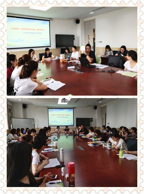 学校德育室从本学期德育主抓的内容、取得的成效以及对工作的反思三方面对一学期德育工作进行了回顾。本学期学校德育工作始终围绕“大拇指”的评价展开,在任务的驱动中,在抱团合作的实施中,助推班主任育德能力的提高,帮助班主任享受职业的幸福感,全方位培养孩子成为“四气”之人。会议上,还对下学期的工作进行了初步的设想:打算梳理和完善一系列学生活动,初步架构有二中心特色的“大拇指成长体验课程”,进一步深化大拇指文化建设。随后,大队辅导员对今年暑假工作做了详细的解读与指导。最后学校领导勉励全体班主任要善于学习,乐于学习,提高自己的沟通力,协调力,做一个有爱的“慧育型”教师。