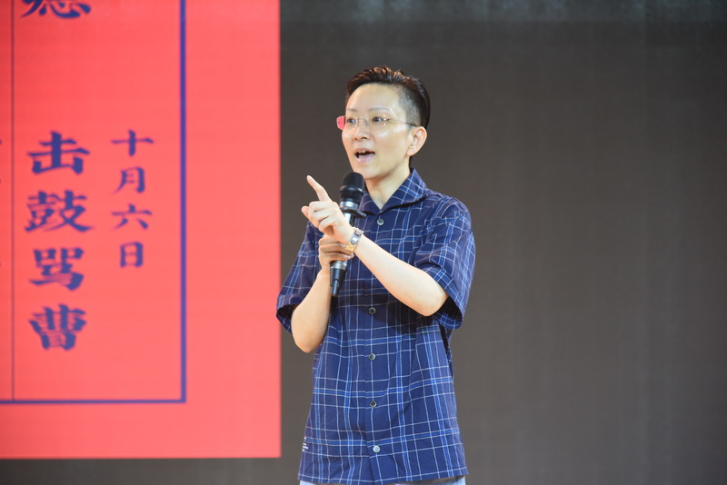 接着,余派须生传人、被誉为“小孟小冬”的瑜老板给孩子们带来了瑜音社京剧普及课程的首次试课。短短一课时内,瑜老板简单回顾了京剧的历史,并从一出《洪洋洞》开始,以漫画讲解剧情,介绍人物、行当、穿戴,欣赏经典片段,并带领小朋友学习唱腔,可谓“瑜音绕梁”。孩子们更加近距离地感受到传统戏剧文化的无穷魅力,也充分领略了新时代京剧艺术家的大家风范。