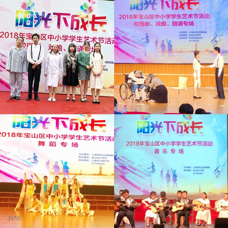 我校积极参加并圆满完成2018年宝山区中小学学生艺术节各项赛事,硕果累累。学校戏剧社团、舞蹈社团以及吉他社团的同学们参加了戏剧、舞蹈和器乐专场的比赛。分别取得了戏剧专场课本剧比赛一等奖、舞蹈三等奖和器乐三等奖的好成绩。