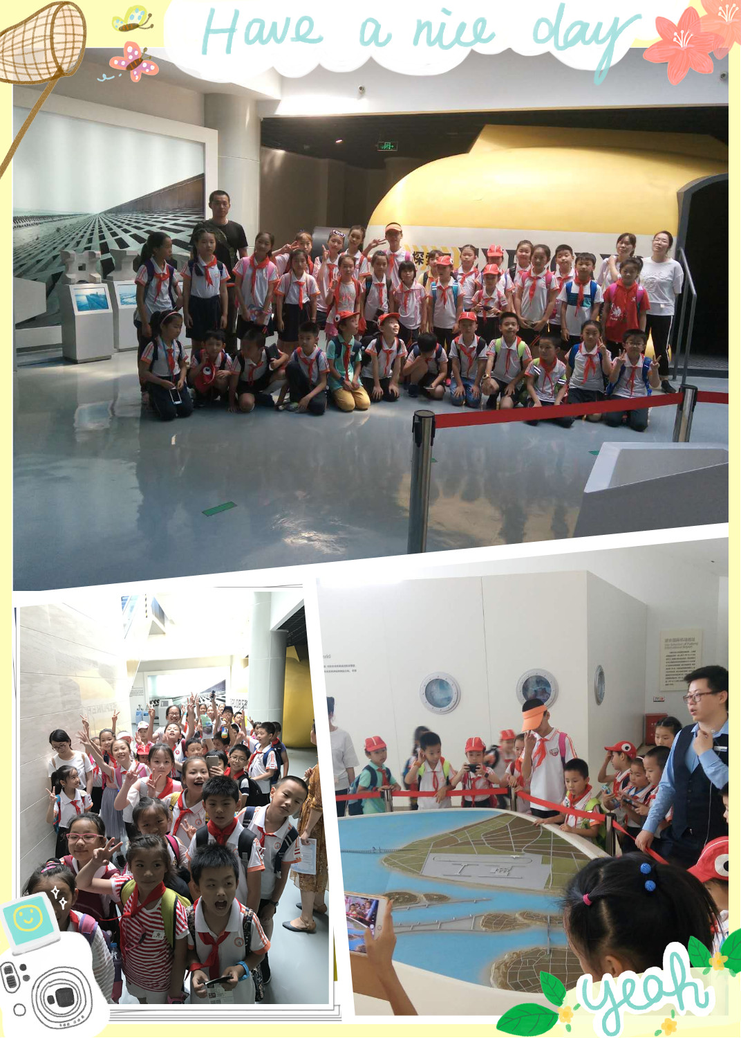 随后,绳童们乘坐大巴来到了实践活动的第一站——上海长江河口科技馆。这是座落在吴淞炮台湾湿地森林公园内的一家以海河资源为主的科技场馆,同学们在讲解员阿姨的介绍下,边看边记,不少同学用手中的相机记录下了许多珍贵的场景和资料。作为宝山境内的学生,大家饶有兴趣地了解到了家乡独特而又丰富的自然环境和资源。