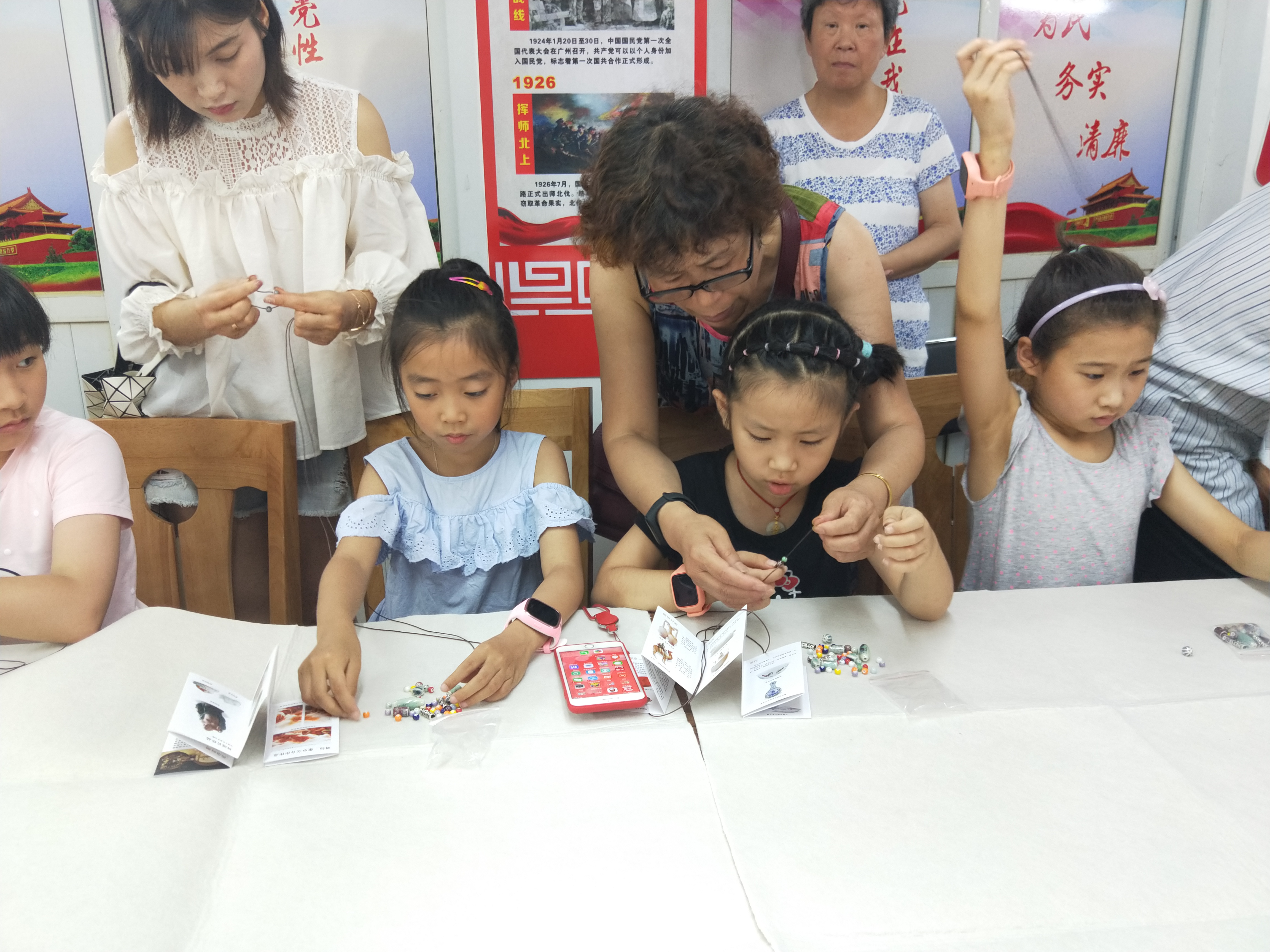 暑假里让雏鹰小分队的队员有了更多的时间去体验他们平时没做过的事。在活动中,孩子们根据刘老师的讲解示范,自己动手配颜色、串珠珠,一个个聚精会神、有模有样。在碰到问题时,或寻求老师的帮助,或自己解决“难题”搞创意。小分队亲手完成作品后,把陶瓷手工项链戴在脖子上,开心不已,一个个嚷着要拍照呢!