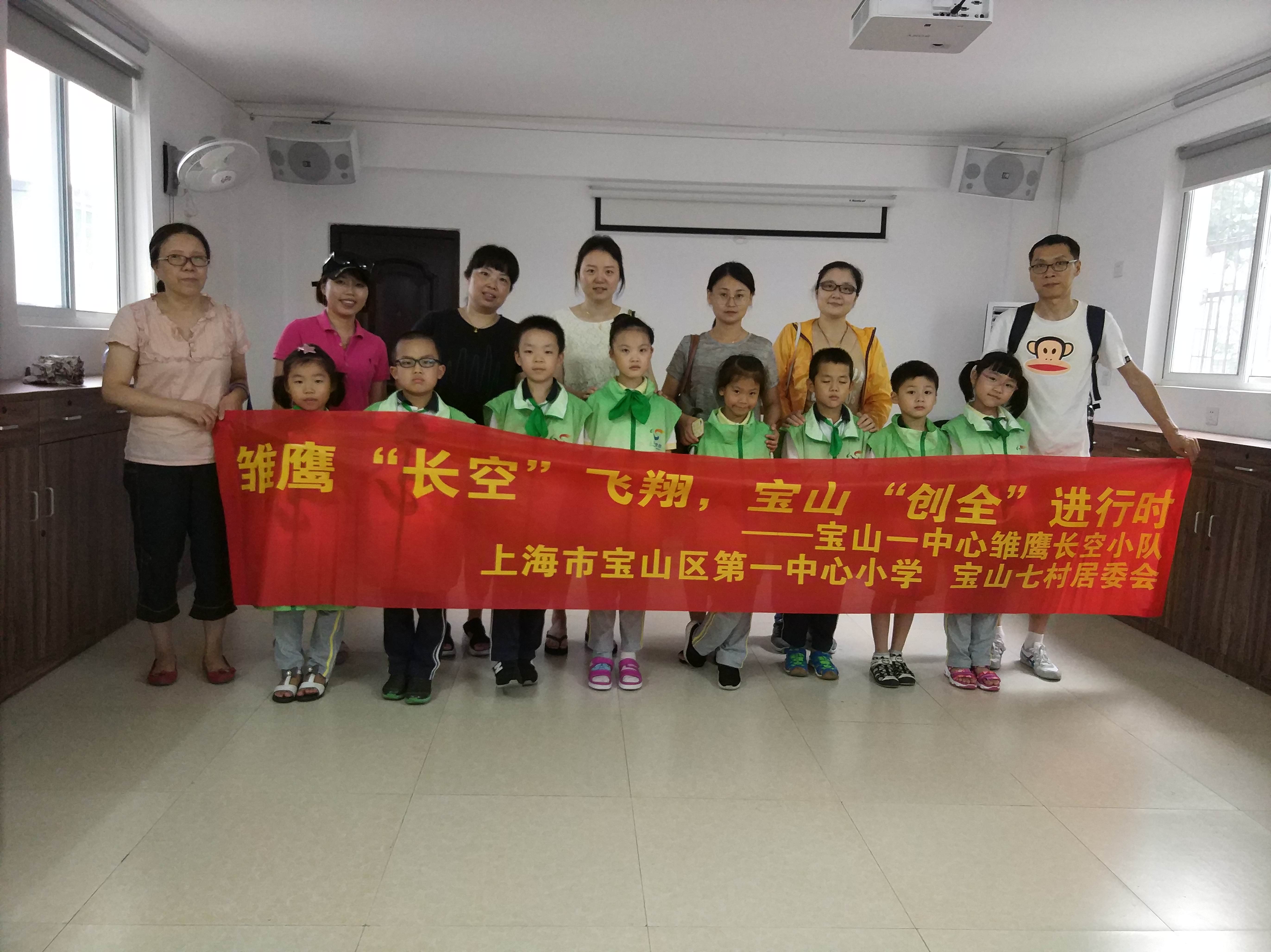 暑假里,顶着炎炎烈日,宝山一中心“长空”雏鹰小队在宝山七村居委会老师和家长志愿者的带领下开始创全行动。