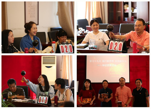 结合党课,党支部继续开展了十九大知识竞赛,党员同志们积极参赛,发挥党小组集体的智慧和力量,合理分工、认真讨论、积极抢答。通过知识竞赛,以赛促学,引导广大党员在学懂、弄通、做实上下功夫,让十九大精神入脑入心,再掀学习贯彻党的十九大精神的新一轮热潮。
