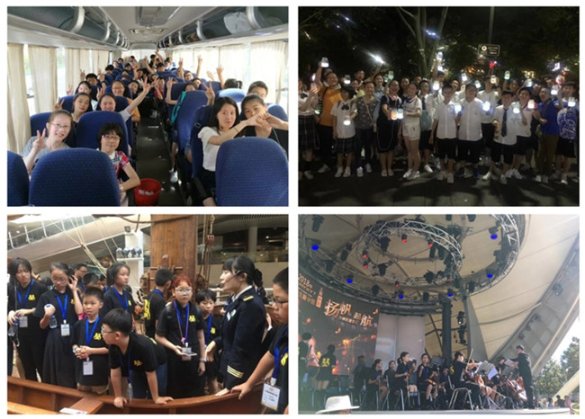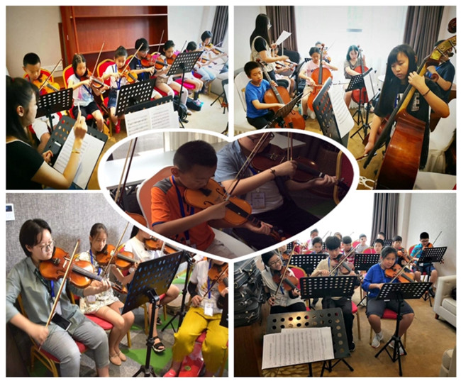 以琴会友:7月9日至14日,弦乐社团的部分大中小提琴学员,参加了一年一度的 “上海映象学生音乐夏令营”。此次活动包括高强度密集声部演奏教学排练、专家课技术指导、管弦乐重奏及交响作品排演三个主要方面。在短短一周内社团成员参与排练了《自新大陆交响曲》、《卡农》、《荒野七侠》、《007》四部风格、时代各异的交响乐作品,从最初拿到乐谱的斗志昂扬,到识谱视奏声部集训的辛苦劳顿,再到拼搏努力初见成效时的欣慰,最后在上海迪士尼度假区舞台精彩亮相……每一时刻都值得骄傲和鼓励!夏令营还安排了并寓教于乐的博物馆参观日、集体游戏互动体验活动,孩子们每天都与音乐相伴,手中的乐器让小伙伴们彼此惺惺相惜、心心相印。