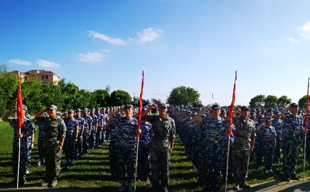 开营仪式 树立目标:伴随着嘹亮的国歌声,注视着鲜艳的五星红旗,同学们在教官的带领下掷地有声地进行宣誓。在整齐划一的步伐声中,本次军训活动正式开始。行知学子们作为“自强营”一营一连的成员,将努力在今后的军训旅途中力争上游,展示自我。