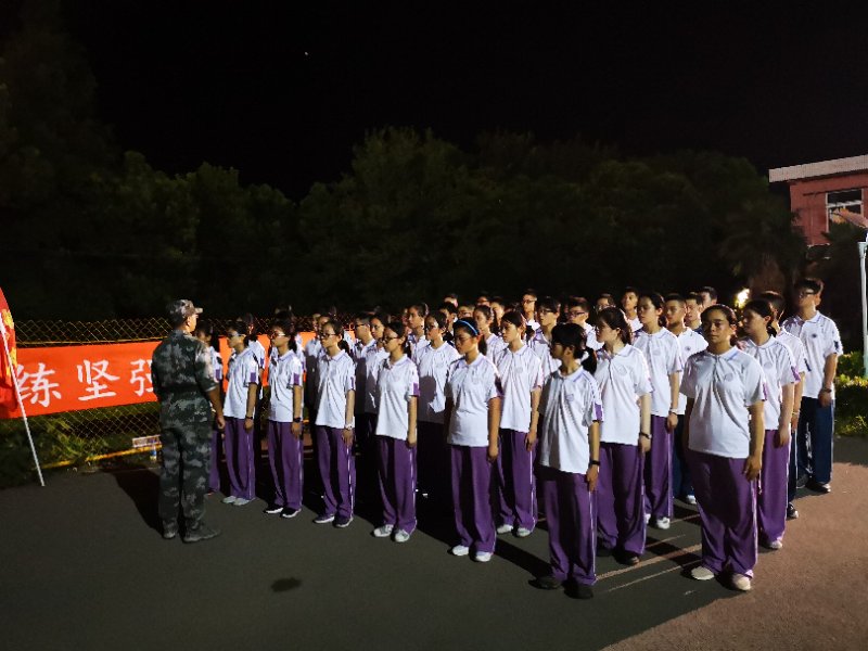 聆听教诲,牢记目标:虫鸣打破了恬静的夜晚,同学们整齐有序地列队于操场中央,聆听教官的教诲,坚信艰苦的训练将铸就自己的非凡品质。