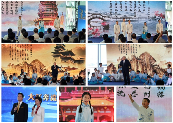宝山区少年宫艺术语言社团受邀参加了本次活动,在演出开篇环节,邵岩、张裕川等20多名社团成员吟诵了《早发白帝城》、《望天门山》、《黄鹤楼送孟浩然之广陵》、《卜算子》共四首经典古诗词。随后,著名京剧表演大师、中国戏剧家协会主席尚长荣老先生登台吟诵了北宋词人苏轼的《念奴娇.赤壁怀古》,赢得掌声不断。