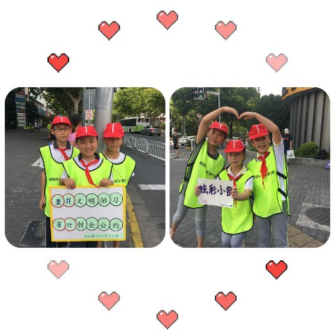 快乐中队的炫彩小队成员们来到了牡丹江路宝杨路口,先宣传“新七不规范”,提醒行人不乱穿马路,做文明人。随后六名成员分为两个小组,分别在两个路口监督往来的路人,路人们看到炫彩小队的成员们衣着整齐,校服外披印有“邹鹰假日小队在行动”的荧光绿马夹,格外遵守交通规则,半小时都没有看到有闯红灯的路人。倒是偶有一两位争分夺秒从路对面跑来,孩子们及时喊“危险”,路人见状尴尬地笑着说“谢谢”,迅速离开时不忘回头对孩子们说“下次会注意”。一中心小学的雏鹰假日小队——快乐中队的炫彩小队成员们用最朴实的关怀传递着“创全公约,人人有责”。