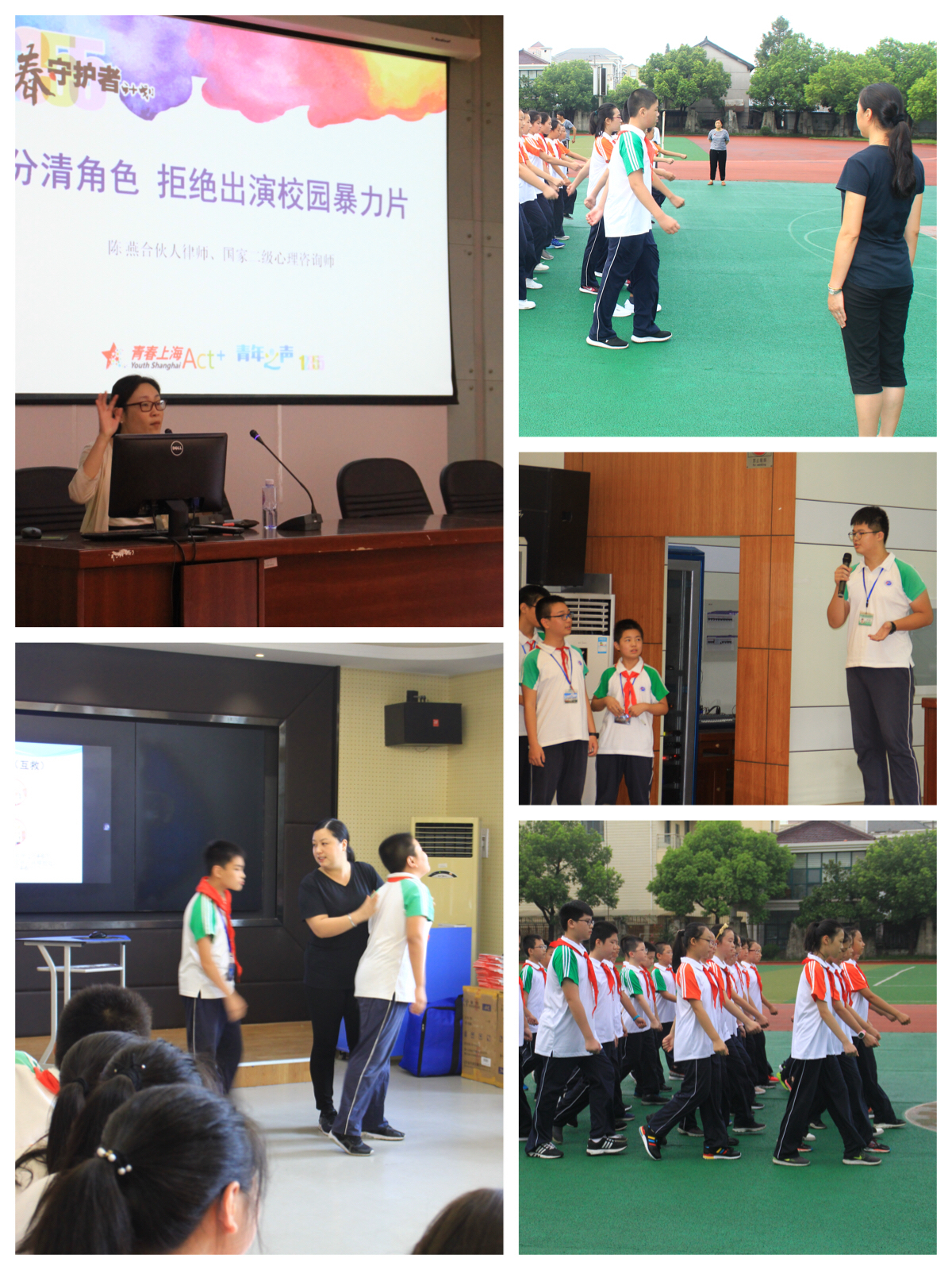 六年级新生入学教育的主题是“转变角色 规范自律”。为期两天半的教育活动,形式多样,切实有效。从常规基础着手,体育老师对新生进行了基本队列的训练与展示。开展了“认识新学校”和“新生入学须知”、“自律争优”、文明用餐、卫生劳动、广播操进退场和校园安全的专题培训。帮助新生进一步了解学校,了解规则,适应全新的初中生活。