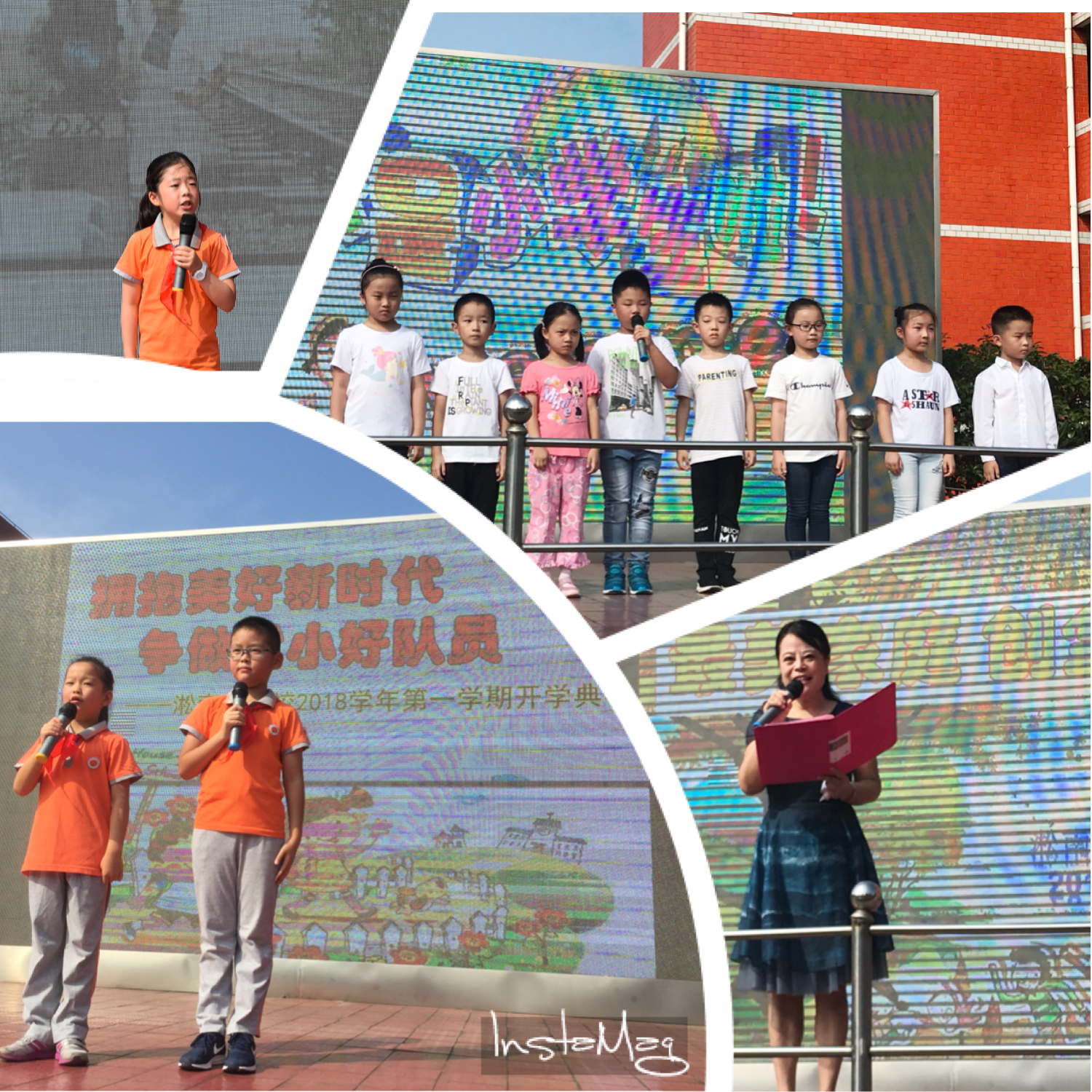 开学典礼上一年级的新生代表用稚嫩的语言为大家做了自我介绍,还以儿童诗歌的形式诵读在校礼仪与规范。
