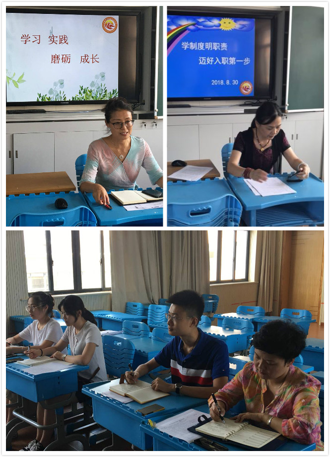 最后,校长把学校的办学理念、办学愿景、育人目标等向新教师们做了介绍。表示学校将会为青年教师的成长提供良好的平台,希望青年教师要用心做事,利用每一个平台提升自己,不误青春。