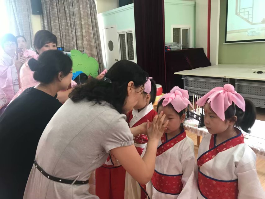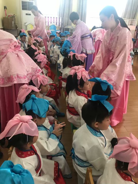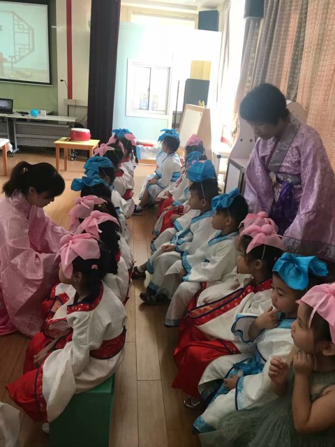 “开笔礼”仪式,孩子们身着汉服,在老师的引导下有条不紊地完成正衣冠、朱砂起智、学写人字、击鼓明志和诵读经典等步骤,在古典的配乐中感知国学传统文化,接受先贤智慧的熏陶,体验中华文化的博大精深。