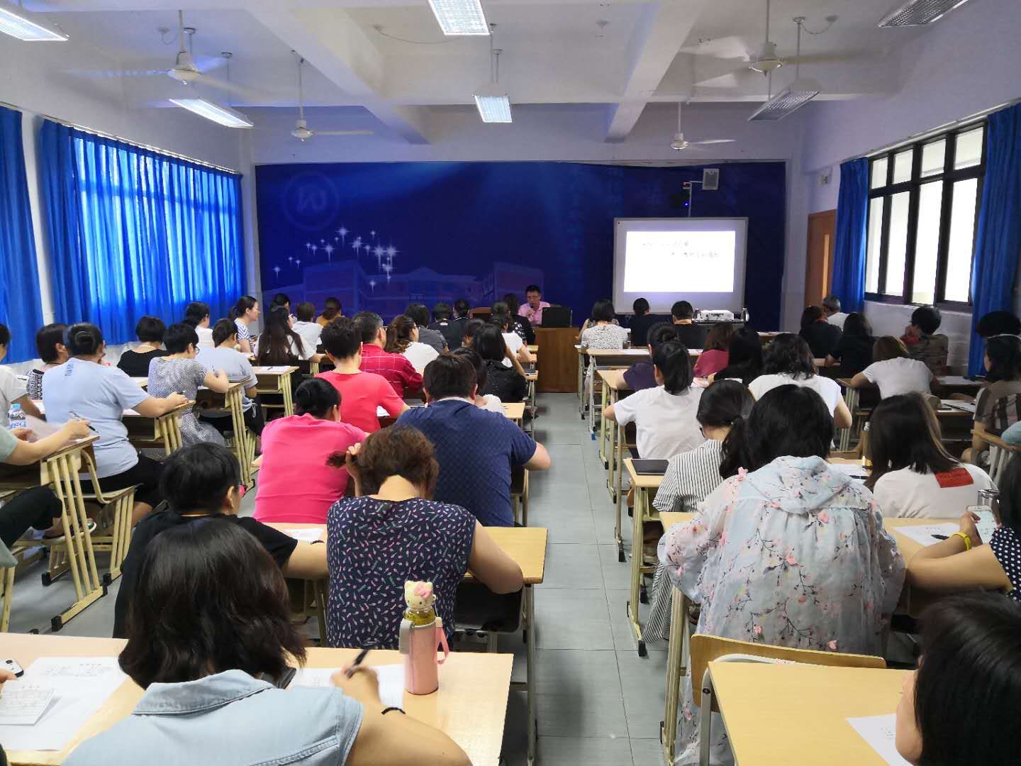 培训内容二:学校邀请区数学专家陈连兴老师为全体教师进行了“关注学生生命质量,着力教师专业成长”为主题的讲座。陈老师结合自己的教学经验,谈到了教师明确学科核心素养内涵的重要性,结合各学科特点分别列举了相应的教学案例。