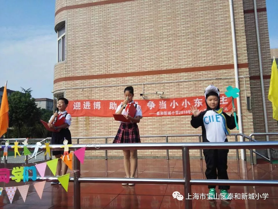 进博会将在上海召开,为了能让队员们当好小小东道主,在校园内外深入宣传进口博览会。泰和新城小学一开学举行了“迎进博,助创城,争当小小东道主”为主题的。