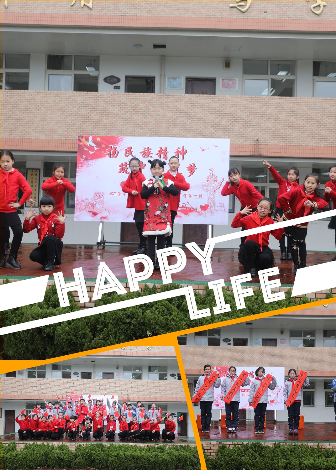 昨夕犬年欢歌迎大地,今朝猪岁新景满神州。2019年2月20,大场中心小学举行“扬民族精神 筑中华之梦”喜迎新中国成立70周年暨2018学年第二学期开学第一课。队员们通过朗诵、倡议、歌舞等形式诠释了“扬民族精神 筑中华之梦”这一主题。