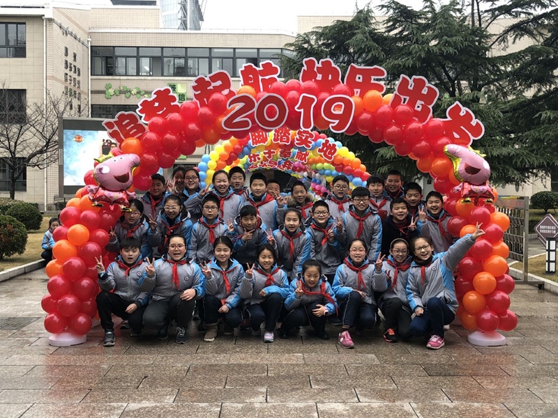 同学们拿着邀请函,从“2019 追梦起航,快乐出发”和“脚踏实地,乐于奉献,永不言弃,追求卓越”的五道彩色拱门穿过,进入学校大楼。