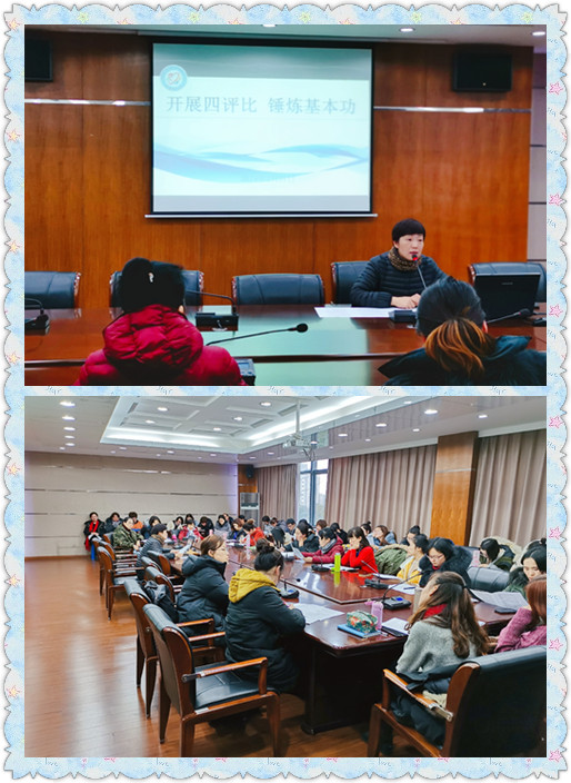 首先,基地校培训负责老师对上学期的内容进行了总结,并分别对师傅和徒弟如何更有效地开展个别带教活动给予了些许建议。并向全体带教导师和见习教师详细解读了《2018届见习教师基本功比赛实施方案》,明确了各项评比的时间、地点和要求,还特别提醒了一些注意事项。听完高老师细致的布置,在场的每位教师都觉得本学期规培工作的这副担子并不轻松。希望见习教师们能在师傅的悉心指导下,在“四评比”过程中不断锤炼基本功,能有长足的进步、出彩的表现。