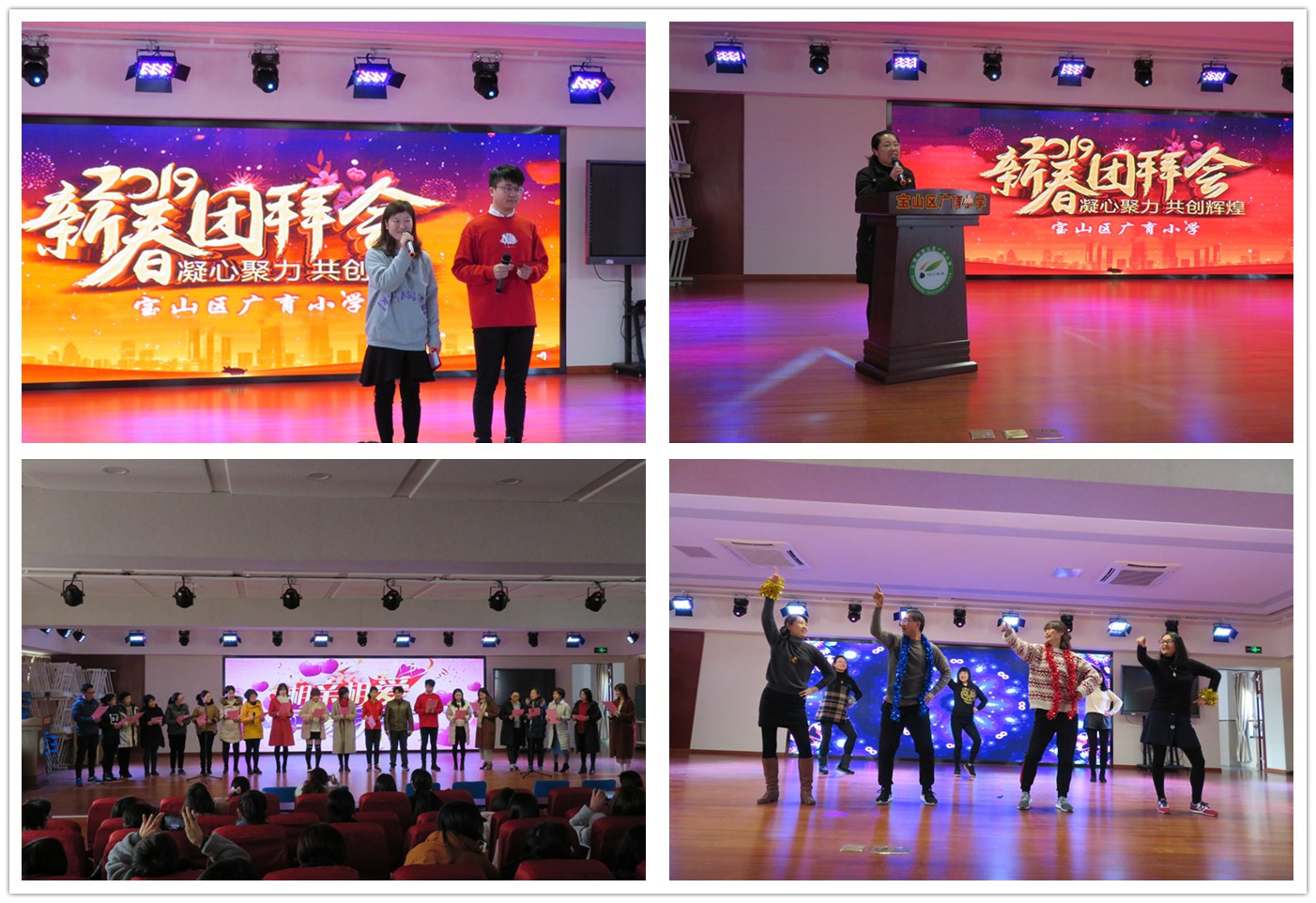 玉犬祥瑞欢辞旧岁,金猪如意恭迎新春。广育小学的南校区六楼小剧场内暖意融融,喜气洋洋,2019年新春团拜会在这里举行。学校党支部书记致新年贺辞,向一年来辛勤工作的全校教职工致以诚挚的谢意和新春的祝福。