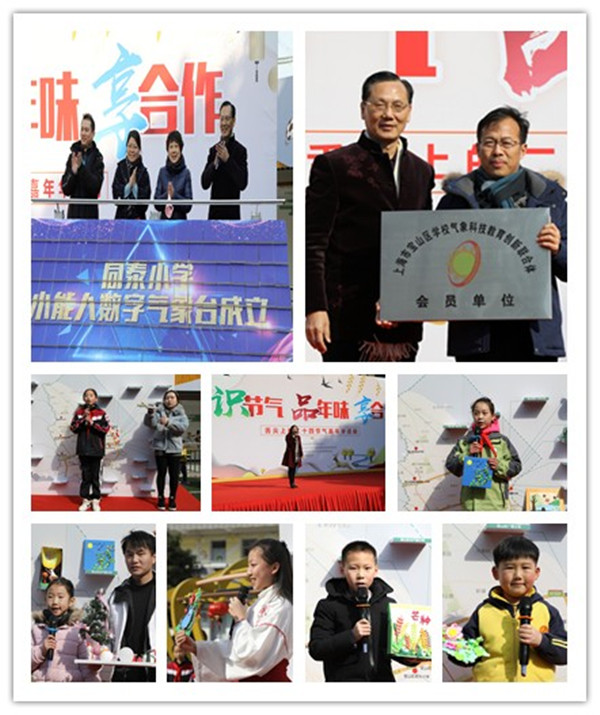 活动初始,二十三所学校的孩子们用宝山区非遗项目——吴淞面塑精心制作了一幅幅“我眼中的二十四节气”作品,这一幅幅妙手生花的作品不仅让在场的所有人感受到了不一样的二十四节气,还在宝山教育的蓝图上描绘出了一条气象科普之路,这也是宝山区气象联合体、吴淞学区各校向改革开放四十周年的献礼。