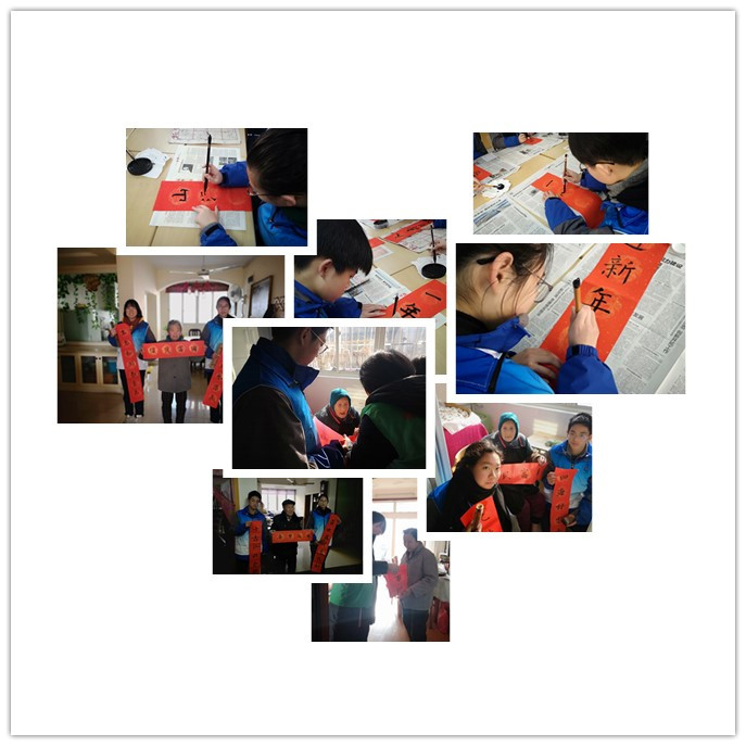 寒假里,学校政教处、团委共同带领8位优秀的学生一同前往罗新镇居委会,与居委干部进社区共同开展“墨香迎新,猪年送福”—“写对联,送祝福”志愿活动。罗中的书法爱好者们身穿志愿马甲,与社区的爷爷奶奶们一起写春联,一点、一横、一撇、一捺,切磋书法技艺,传递新年心意。