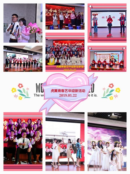 活动分为“欢迎与祝福”、“青春与活力”、“坚守与展望”三个篇章。随着60后老师们的非洲鼓声,伴着《新年好》的旋律,迎新活动热力开场。领导嘉宾们倾情致辞,表达心中的感谢和美好的祝愿。精彩纷呈的节目让人目不暇接:歌曲联唱《恭喜发财》、健康操《美美哒》、情境剧《天天向上》、歌舞《马德里不思议》、魅力时装秀……节目间隙还穿插了趣味小游戏。欢乐中也不乏感动,90后青年教师诗朗诵《园丁颂》代表大家向30年教龄的老教师致敬;兄弟学校、共建部队、学生、家长、教师家属等纷纷发来温馨的祝福视频。在大合唱《明天会更好》的歌声中,迎新活动达到了高潮。本次活动亮出了虎小精彩名片,展现了教师们课堂之外的风采。