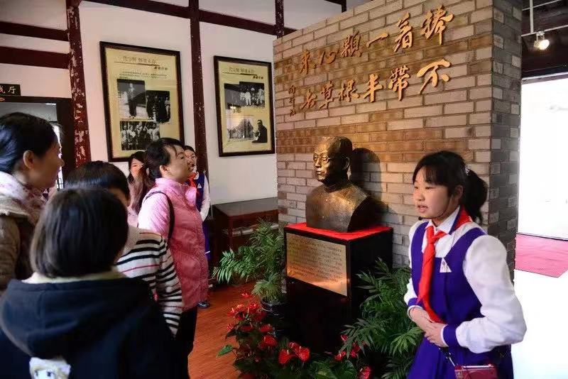 行知育才旧院前,钟声悠扬,小陶子的讲解使来访者感受行知精神的传承创新:上海市行知实验中学是在伟大的人民教育家陶行知先生亲手创办的原育才学校旧址上于1993年重建的一所完全中学。上海市行知实验中学是上海市文明单位、上海市中学生行为规范示范校,现为宝山区实验性、示范性高中、上海市特色普通高中建设项目学校、中华优秀传统文化研习暨上海市非遗进校园优秀传习基地、上海市无线电特色教育学校、全国生态文明教育特色学校、宝山区科技特色学校、宝山区绿色学校等。