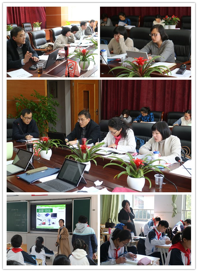 教研室的教研员们认真查阅了我校教学常规管理的各类资料,区教育学院培训部老师详细检查了我校师训专项的相关资料,了解我校的教育教学工作的开展与实施情况;教研员们则是整个上午在教室里随堂听课,中午抓紧时间与教师们进行听课反馈、交流意见,查看相关组室教研活动资料,并与教研组、备课组进行座谈。本次视导听课覆盖面广,涉及到语文、数学、英语、物理、化学、思品、美术、科学、音乐、体育等多门学科,累计听课24节。