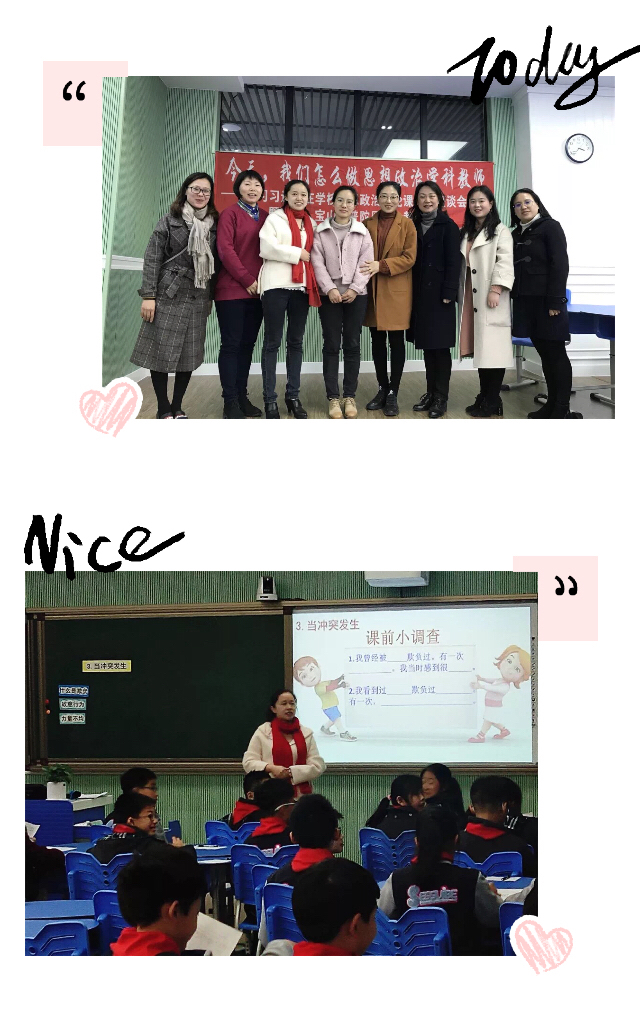 宝山区道德与法治指导团成员——大华第二小学的吴老师执教四年级下册第三课《当冲突发生》第二课时,通过模拟情景剧、讨论与交流、课外调查、具体行为指导等方法,让学生了解欺负的含义、掌握同伴调解的好方法,继而让他们明白要与同学和谐相处。其中,师生、生生互动合作演绎同伴调解、总结调解原则,给在座老师留下了深刻的印象。