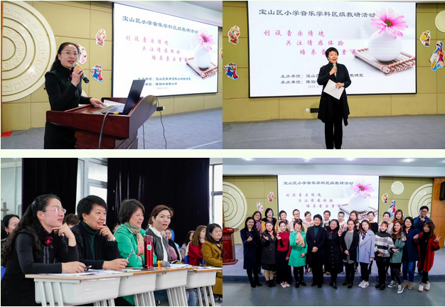 4月10日上午,宝山区小学音乐学科“小学音乐舞蹈与律动课型的实践与研究”主题区级教研活动在陈伯吹实验小学举行,上海市现代音乐职业学校党支部书记、市正高级特级教师李逊芳老师,区教育学院音乐学科教研员以及全区音乐教师齐聚一堂分享名师观点、研讨课堂教学。