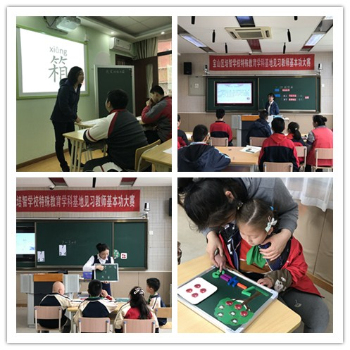 为推进2018学年见习教师规培工作,围绕课堂经历与教学实践板块,聚焦课堂教学能力展示,在宝山区教育学院师训办的大力支持下,宝山区培智学校特殊教育学科基地组织开展了见习教师课堂教学评优活动。基地诚邀了市、区特教教研员以及外区特教学校校长作为本次活动的评委。