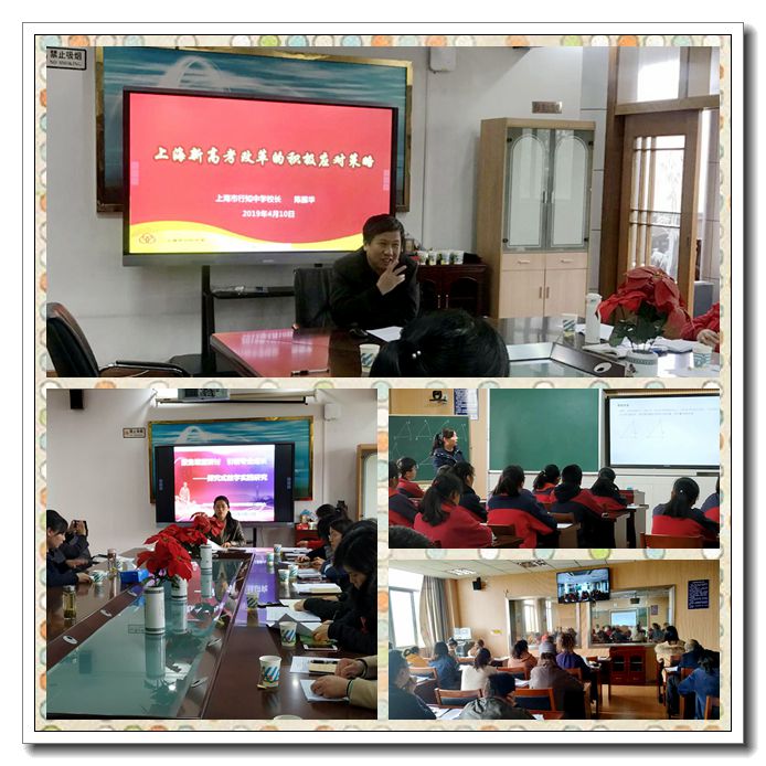 活动先由我校区骨干老师执教了一堂九年级复习展示课。在随后的说课、评课过程中,团队导师及成员对执教老师的教学基本功、教学模式给予了肯定,同时结合自身的教学经验给出了宝贵的意见和建议。活动,还请来了上海市行知中学的陈振华校长,他是我校强校工程“双名工程”配备的名校长。会上陈校长做了题为《上海新高考改革的积极应对策略》的专题讲座,同时也就数学学科的核心素养做了深入的阐述,使在座教师对中高考改革的深远意义有了全新的认识。