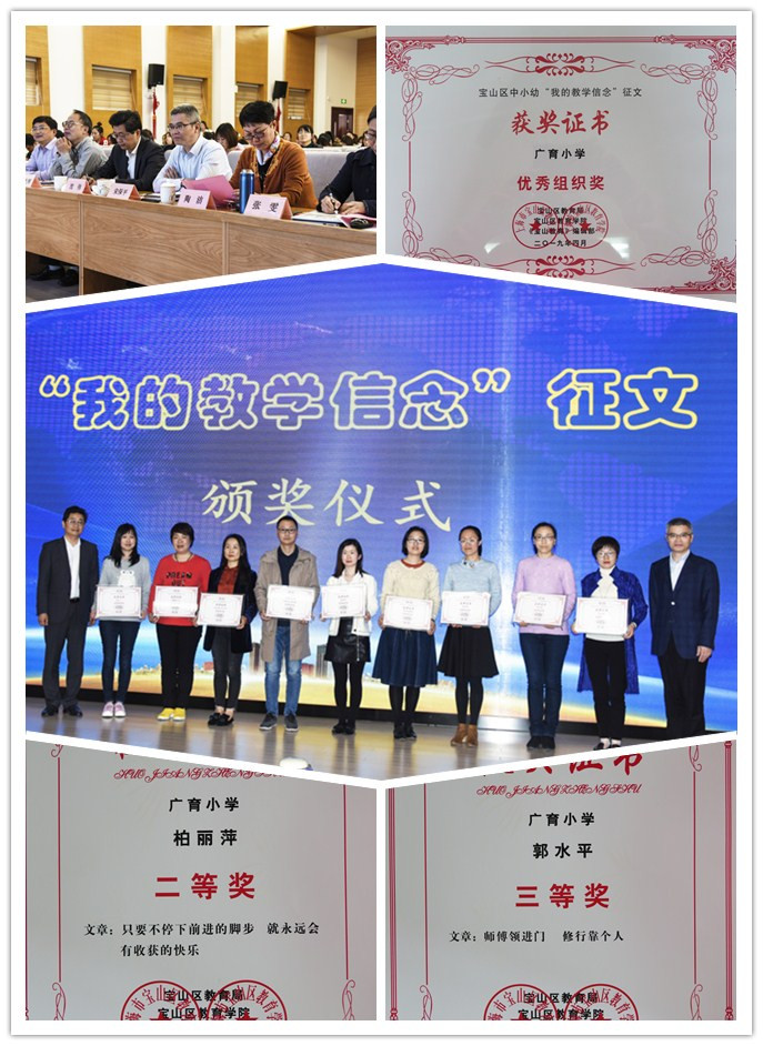 本次征文共有152所中、小、幼学校参与,共收到965篇征文,经过四轮严格评审,最终评出20个优秀组织奖单位,21个一等奖,47个二等奖等获奖征文。广育小学荣获优秀组织奖,柏丽萍老师文章《只要不停下前进的脚步 就永远会有收获的快乐》获二等奖;杨春筠老师文章《让孩子们高高兴兴上语文课》、郭水平老师文章《师傅领进门 修行靠个人》分获三等奖。